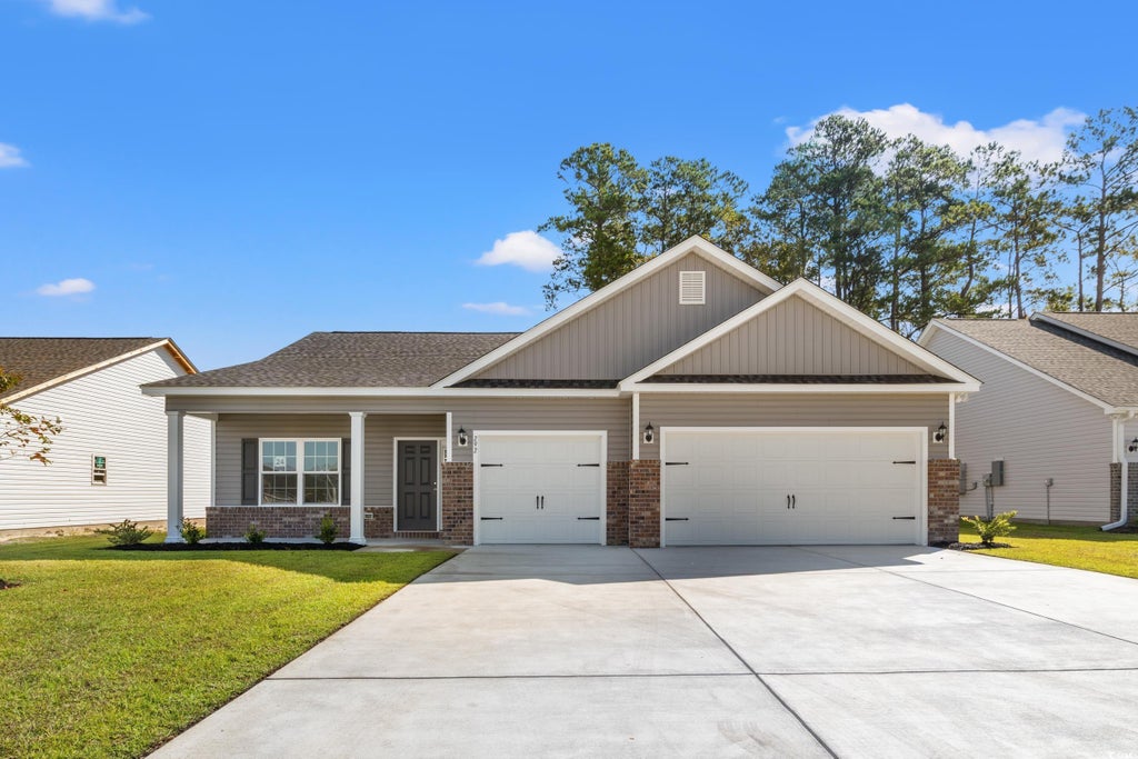 New construction! This is the Buxton floor plan with a 3 car garage and is located just minutes from downtown Little River! Fantastic open floor plan with the family room under a soaring vaulted ceiling. Kitchen will have staggered-height white cabinetry with quartz countertops, a large island and stainless appliances. The large master bedroom features an oversized walk-in closet, double sinks in master bathroom, a walk in shower with a linen closet. Two generously sized guest bedrooms and a 2 baths, 1 is on the opposite side of home and 2nd is upstairs. Main living area, all bathrooms and laundry has vinyl planking and bedrooms will have carpet. This home has a covered rear porch which is perfect for relaxing. Building lifestyles for over 40 years, we remain the premier home builder along the Grand Strand. We’re proud to be the 2021, 2022, 2023, and 2024 winners of both WMBF News' and The Sun News Best Home Builder award, 2023 and 2024 winners of the Myrtle Beach Herald's Best Residential Real Estate Developer award, and 2024 winners of The Horry Independent’s Best Residential Real Estate Developer and Best New Home Builder award. Pictures are from another of the same model built elsewhere and may have different features/upgrades. Welcome home to Little River Estates! Home is move in ready.